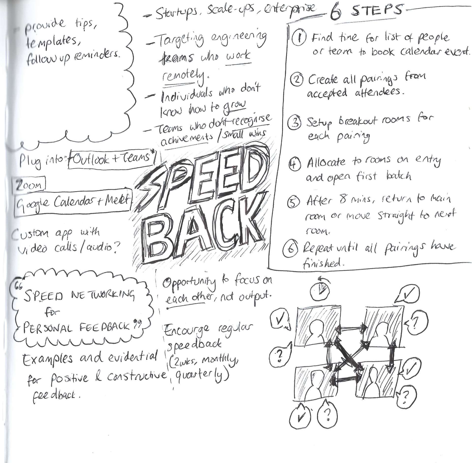 This first one is an elaboration on a recent blog post I wrote about facilitating faster feedback between team mates in a speed-networking environment called Speedback. Through running these sessions manually, it got me wondering how it could be made easier through some automation in MS Teams (other video conference software is available).